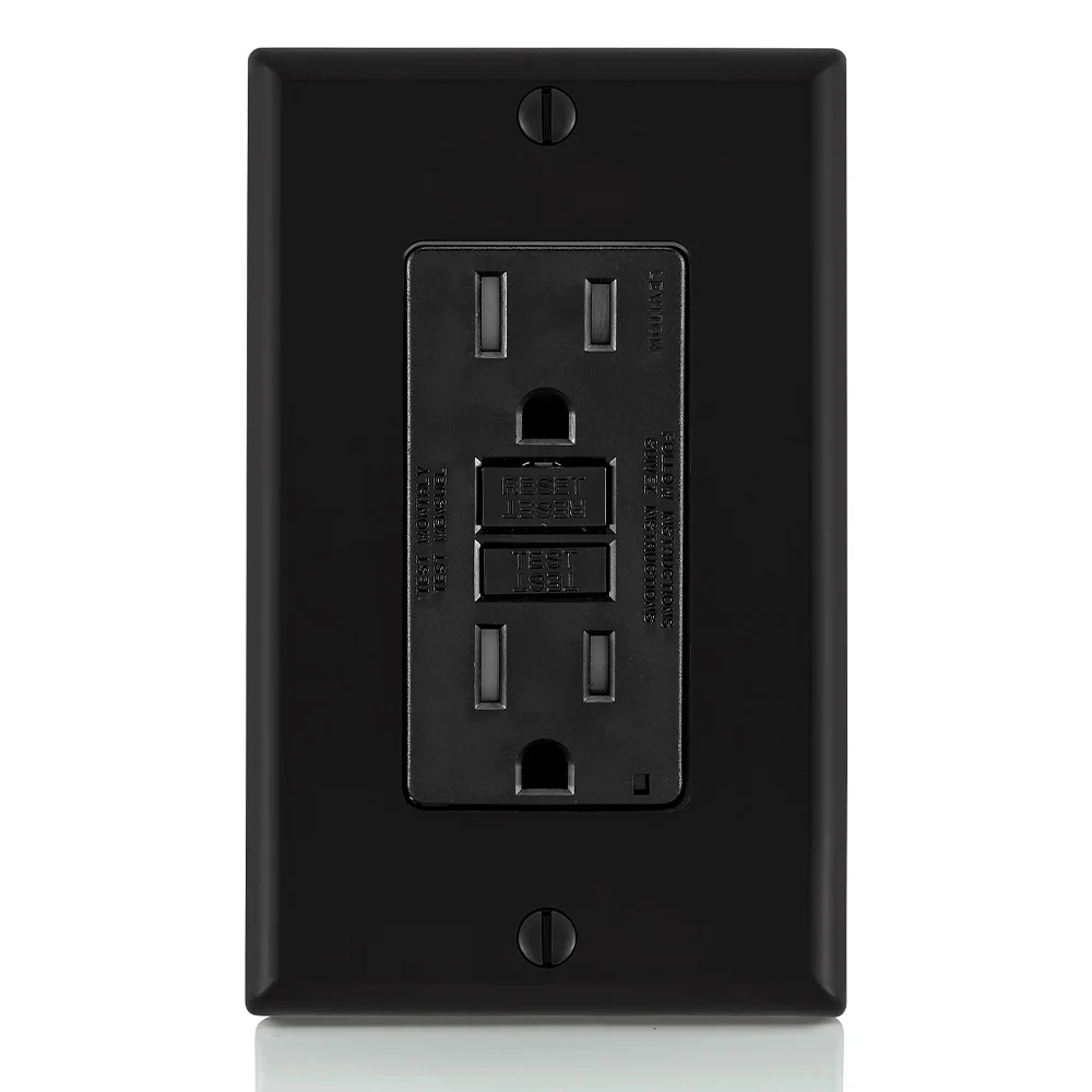 LEVITON GFTR1-E Self-Test GFCI Receptacle, 125 VAC, 20 A, 2 Poles, Black, 3 Wires