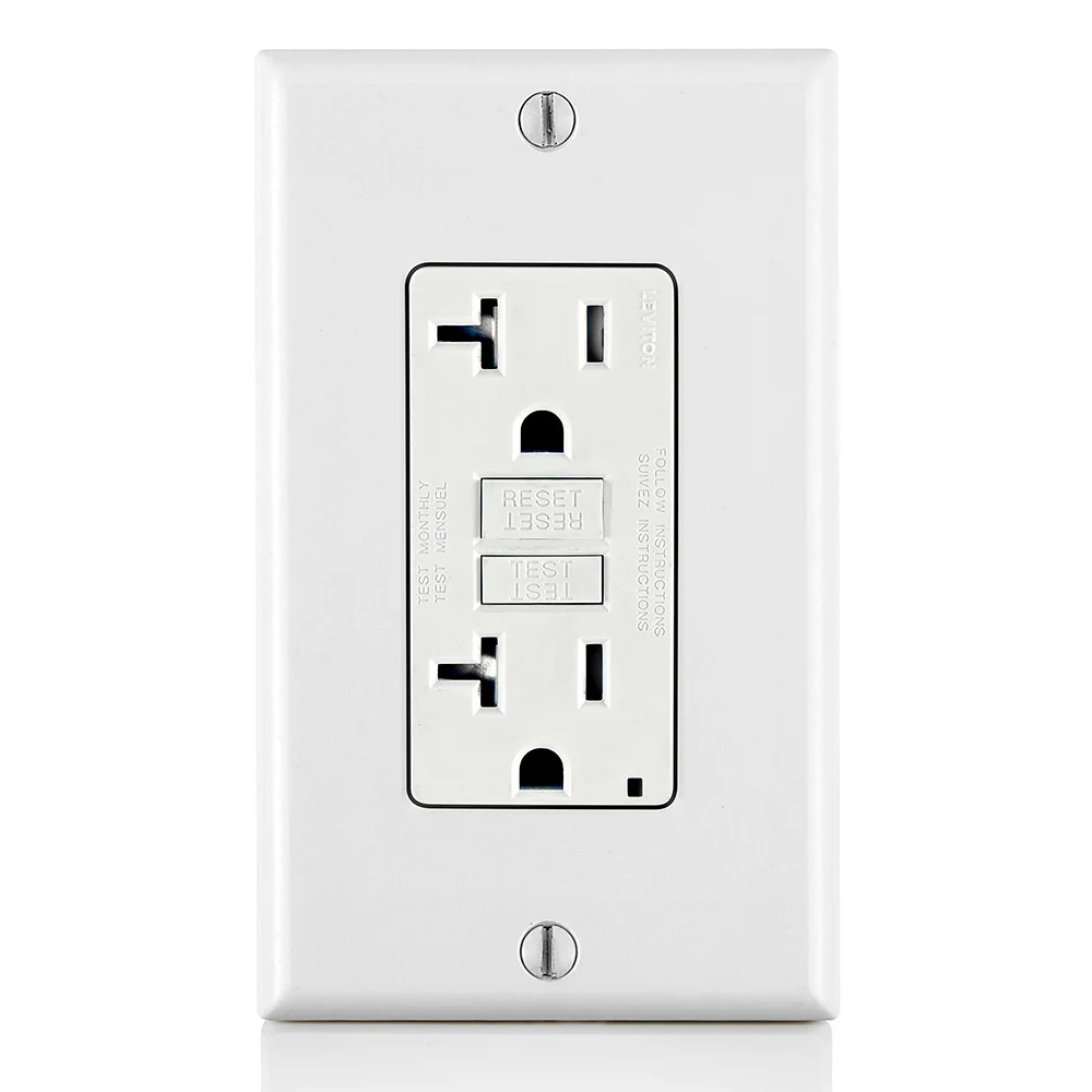 LEVITON GFTR2-W Self-Test GFCI Receptacle, 125 VAC, 20 A, 2 Poles, 3 Wires, Polycarbonate, White