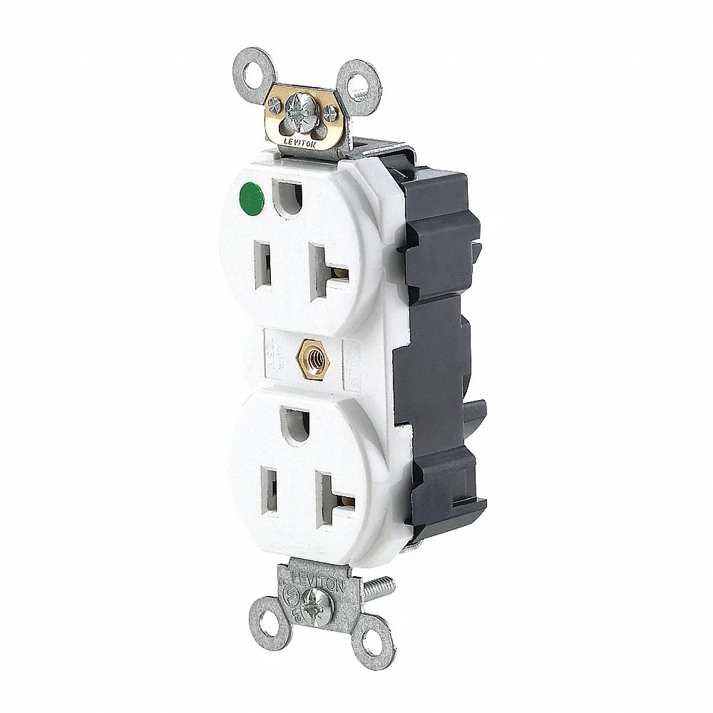 LEVITON M8300-HW Receptacle, Duplex, 5-20R, 20 A, 125V AC, 2 Pole / 3 Wire Poles & Wires, White