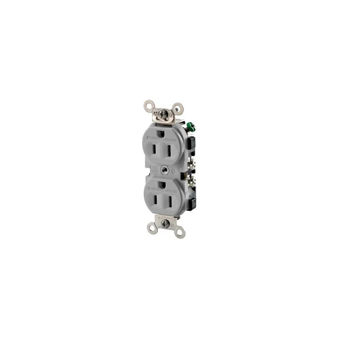 LEVITON TWR15-GY Traditional Straight Blade Receptacle, 125 VAC, 15 A, 2 Poles, 3 Wires, Gray, Nylon
