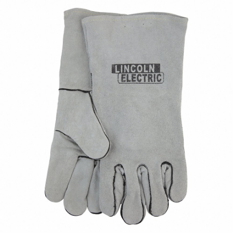 LINCOLN ELECTRIC KH641 Welding Gloves, Wing Thumb, Leather, L Glove Size, MIG/Stick, Gray, 1 PR
