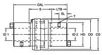 | Model | Outside Dia. | Coupling Size | Length Through Bore | Max. Bore | Min. Bore | Dimension Hd | Dimension Cd | Volume | Price | |