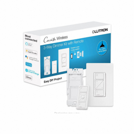 LUTRON P-DIM-3WAY-WH In-Wall 3-Way Smart Di mmer Switch Kit, Wireless RF, 3-Way
