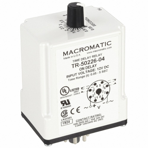 MACROMATIC TR-50226-08 Time Relay, On Delay, 0.6 Sec, 12 VDC