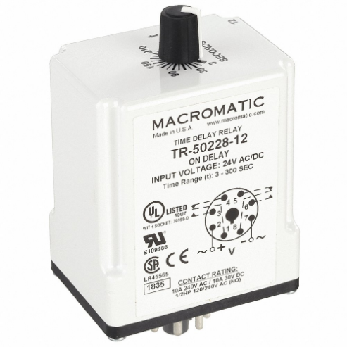 MACROMATIC TR-50228-12 Timer Relay, 300 Sec, 8 Pin, 10A, 24V AC/DC