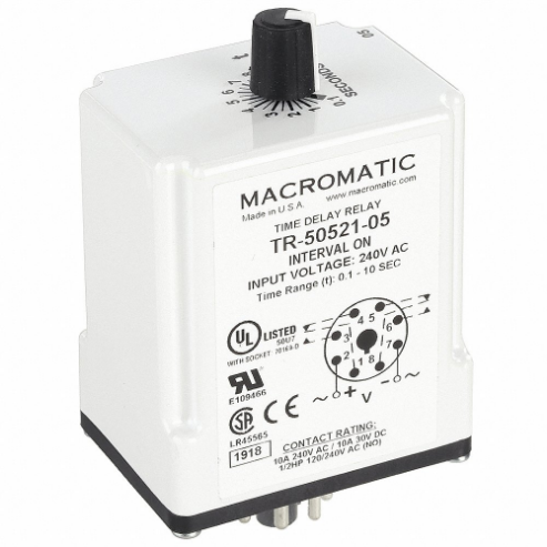 MACROMATIC TR-50521-05 Time Relay, Interval On, 0.1 Sec, 240VAC