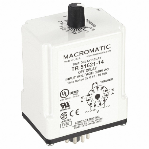 MACROMATIC TR-51621-14 Time Relay Off Delay 9 Sec. 240vac