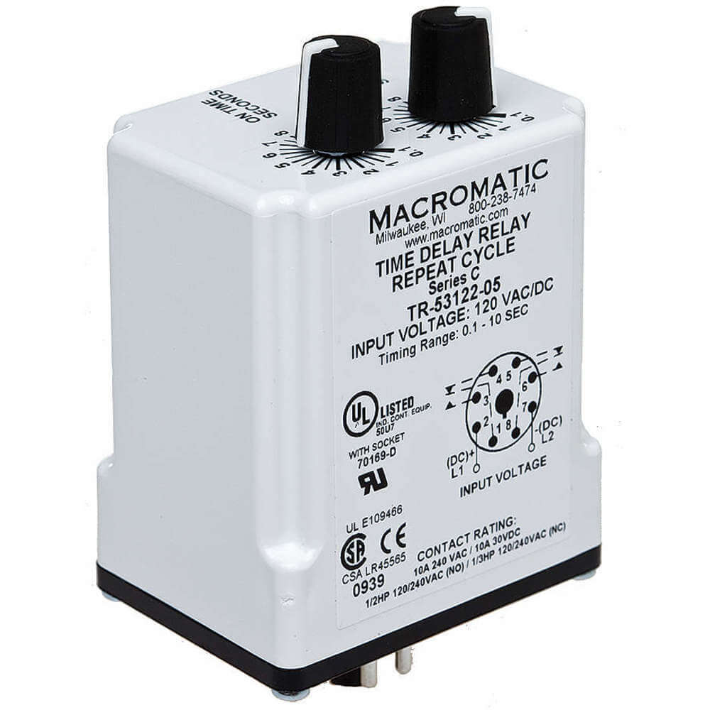 MACROMATIC TR-55122-12 Timer Relay, 300 Sec, 8 Pin, 10A, 120V AC/DC