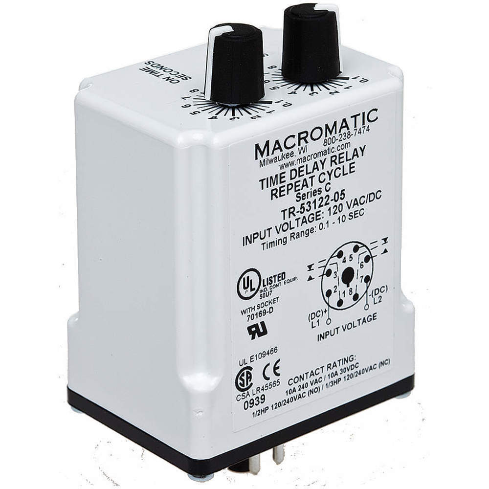 MACROMATIC TR-55128-10 Timer Relay, 180 Sec, 8 Pin, 10A, 24V AC/DC