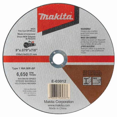 MAKITA E-03012 Abrasive Cut-Off Wheel, 9 Inch Abrasive Wheel Dia Oxide, Type 1