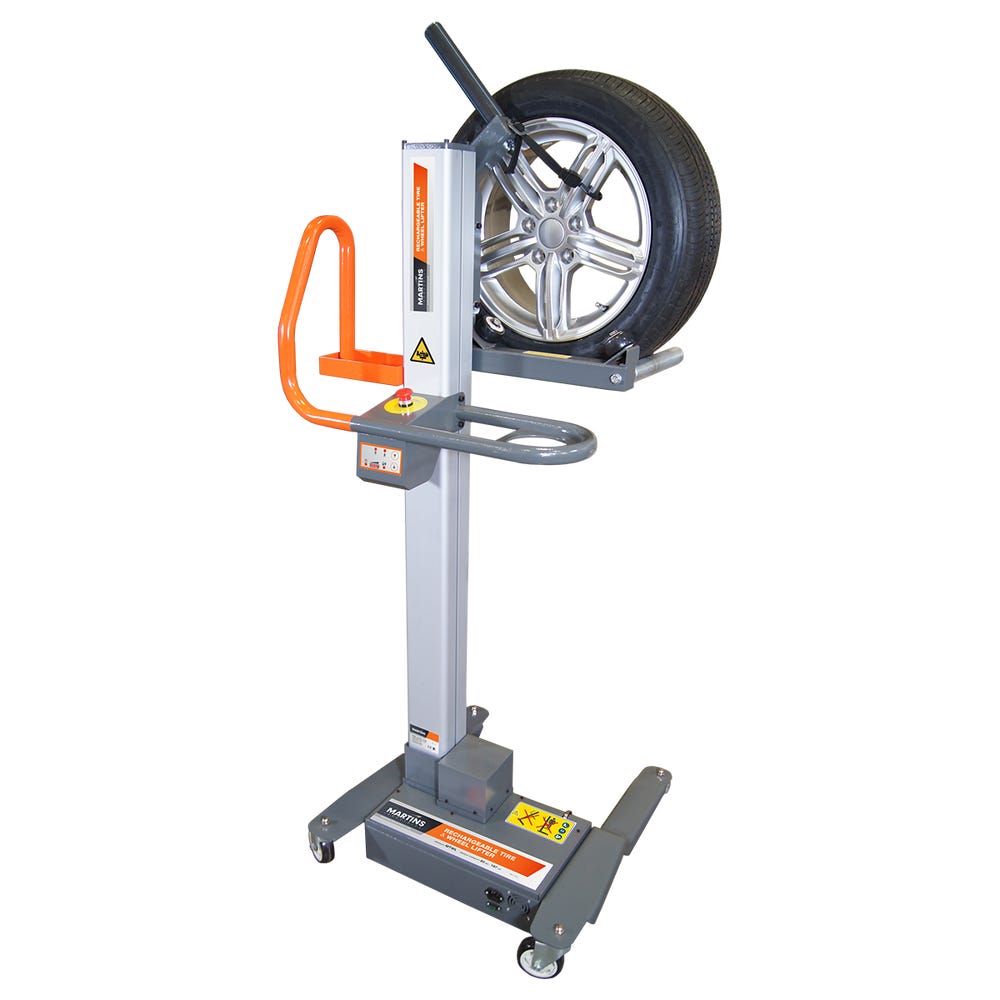 Martins Industries MTWL tyre and wheel lifter is used in automotive repair and maintenance shops for lifting and transporting heavy wheels and tires.