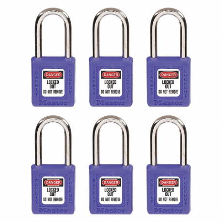MASTER LOCK 410S6BLU LOCK Lockout Padlock, Keyed Different, Thermoplastic, Std Body Body Size, Metal, Std, Blue