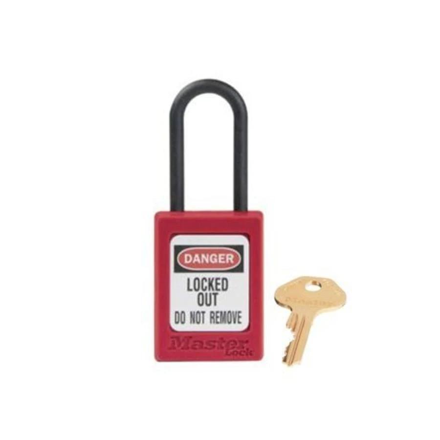 MASTER LOCK S32KAMKRED Thermoplastic Safety Padlock With Master Key, Nylon Shackel, 1 1/2 Inch Tall Shackle, Keyed Alike, Red