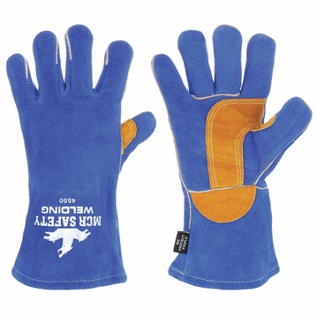 MCR SAFETY 4500L Welding Gloves, Wing Thumb, Gauntlet Cuff, Premium, Blue Cowhide, Safety Welding 4500, B