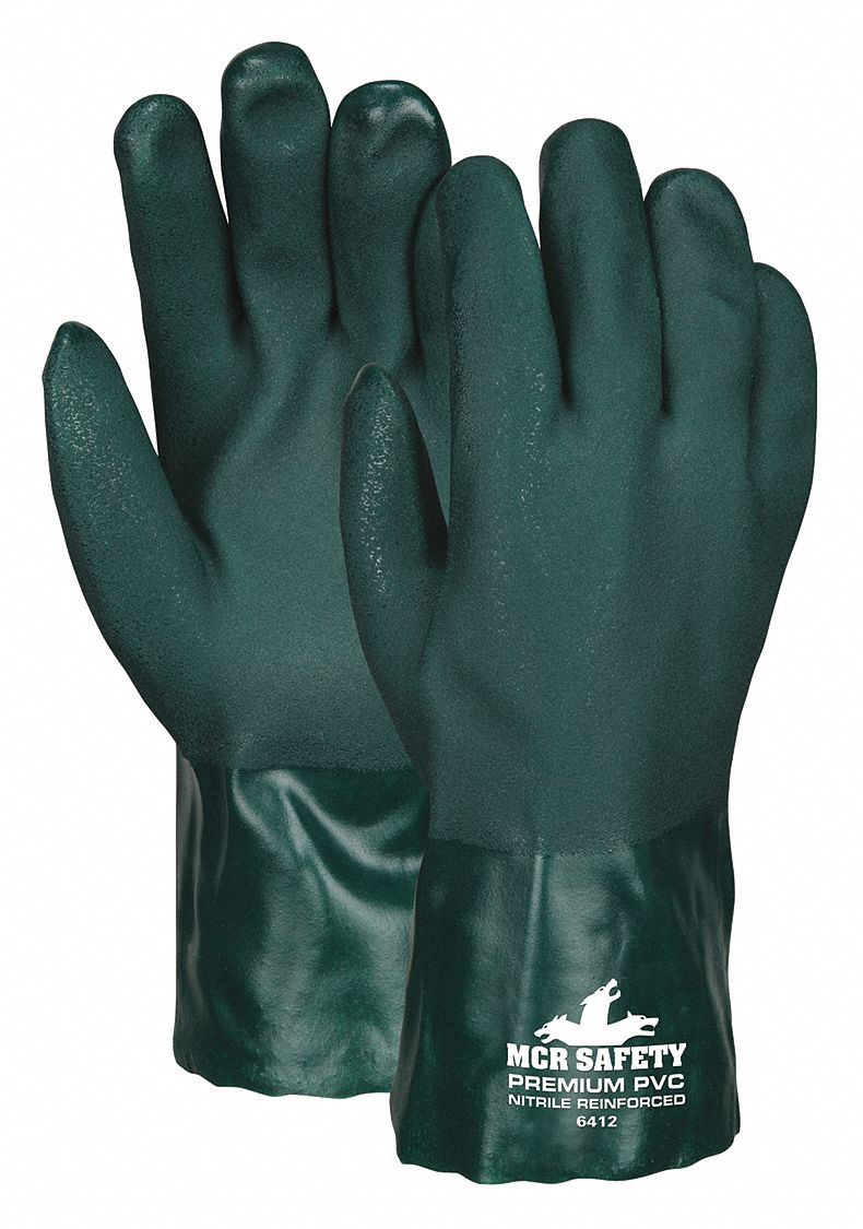 MCR SAFETY 6412 Chemical Resistant Glove, L Size, Pvc