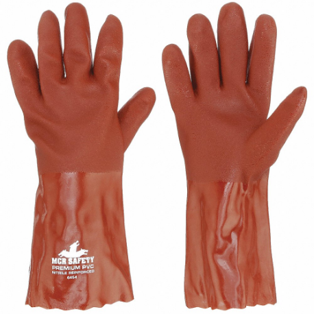 MCR SAFETY 6454S Chemical Resistant Glove, 14 Inch Length, Grain, L Size, Red, S6454S