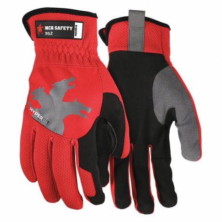 MCR SAFETY 952M Mechanics Glove, Size L, Full Finger, Synthetic Leather, Red, Pr