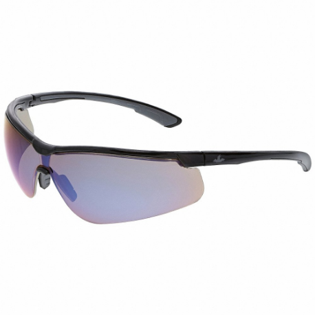 MCR SAFETY KD718B Safety Glasses, Anti-Scratch, No Foam Lining, Wraparound Frame, Half-Frame, Blue, Black