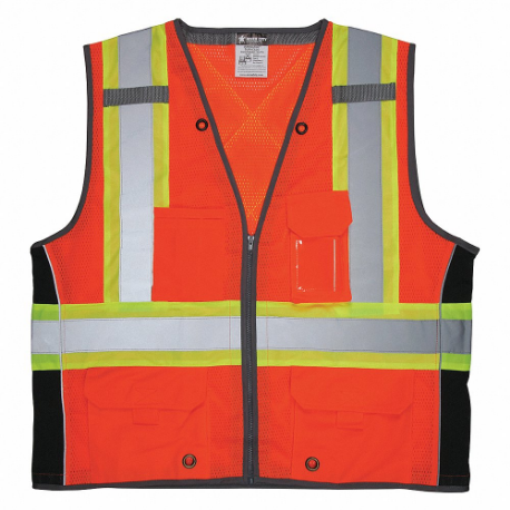 MCR SAFETY SURVCS2OM High Visibility Vest, ANSI Class 2, X, M, Orange, Solid Polyester, Zipper