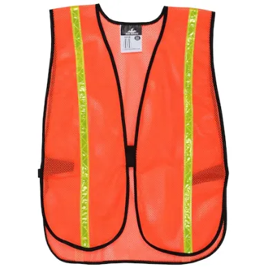 MCR SAFETY V211R Safety Vest, Universal, Orange, Solid Polyester, Hook-And-Loop