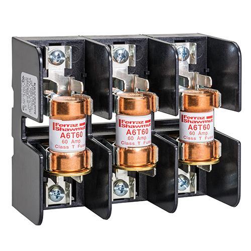 MERSEN FERRAZ 60658T Fuse Base, 600V, 60A, Class T, 3 Pole, Tin Plated, Copper Box
