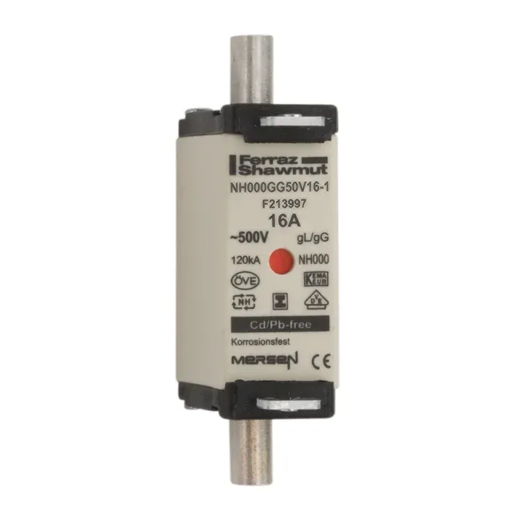 MERSEN FERRAZ V215528 NH000GG50V10-1 Standard Fuse Link, gG Type, NH000 Size, 500 VAC, 250 VDC, 10A, Isolated Tag, 21 mm Width