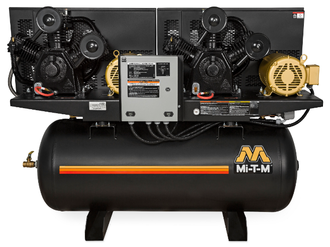 MI-T-M ADD-23110-120H Electric Air Compressor, Duplex, 120 Gallon, 68.4 Cfm, 10 HP, 230 V, 1 Phase, 78 A