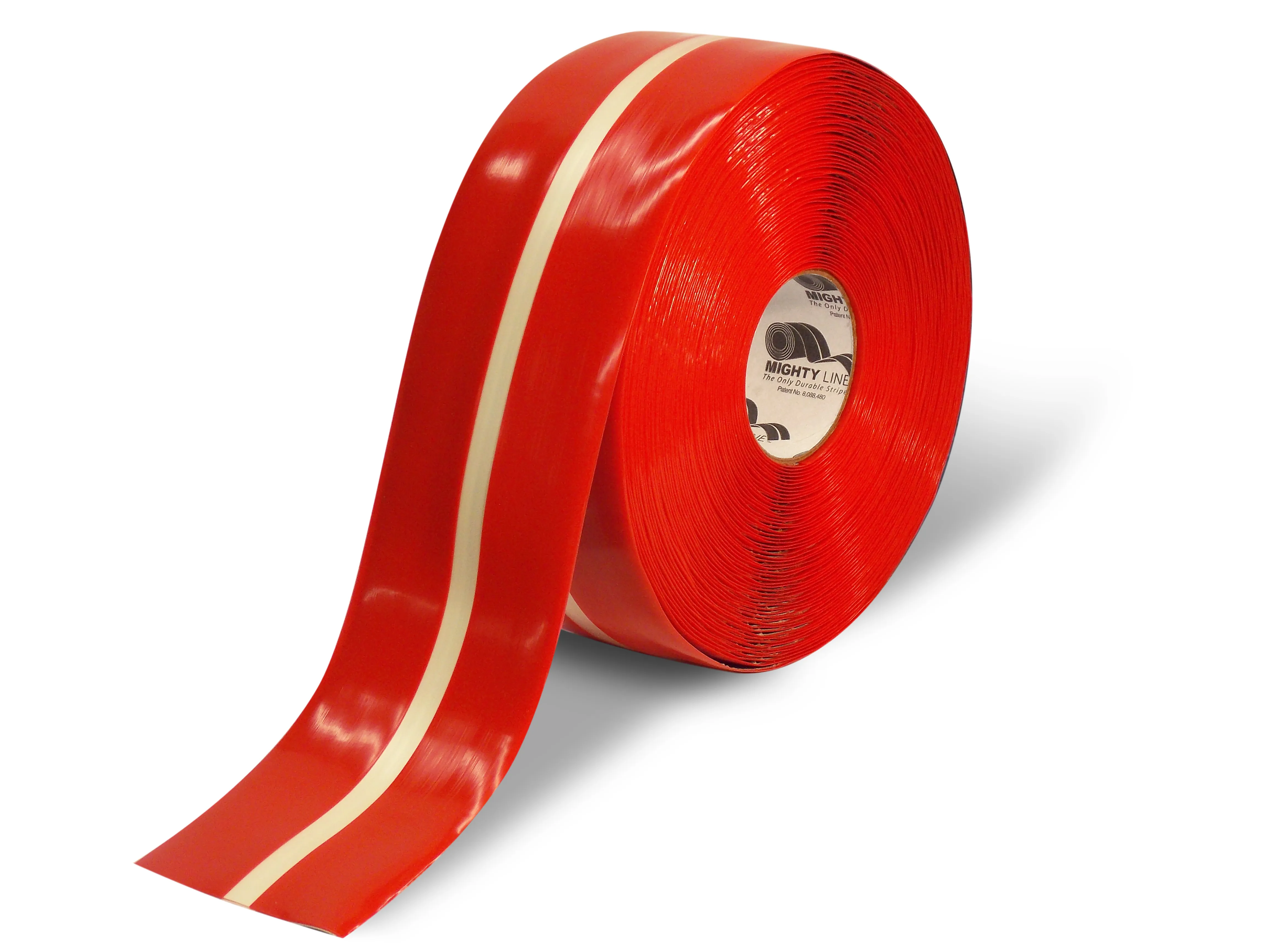 MIGHTY LINE 4RRWCTR Red Tape with White Center Line, 4 Inch Wide, 100 ft. Roll