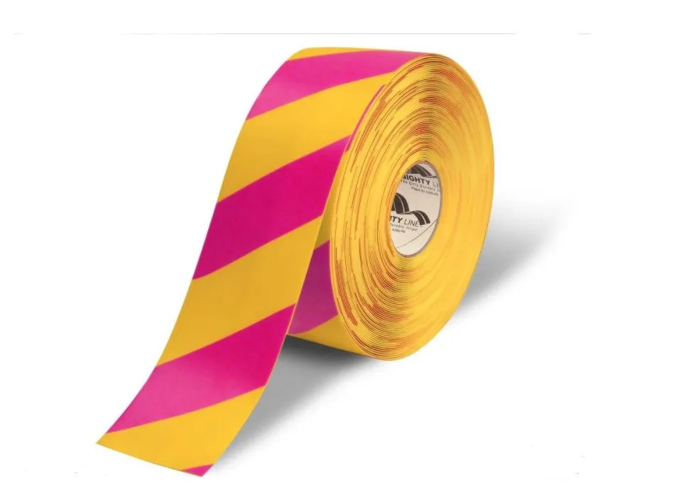 MIGHTY LINE 4RYCHVM Yellow Tape with Magenta Chevrons, 4 Inch Wide, 100 ft. Roll