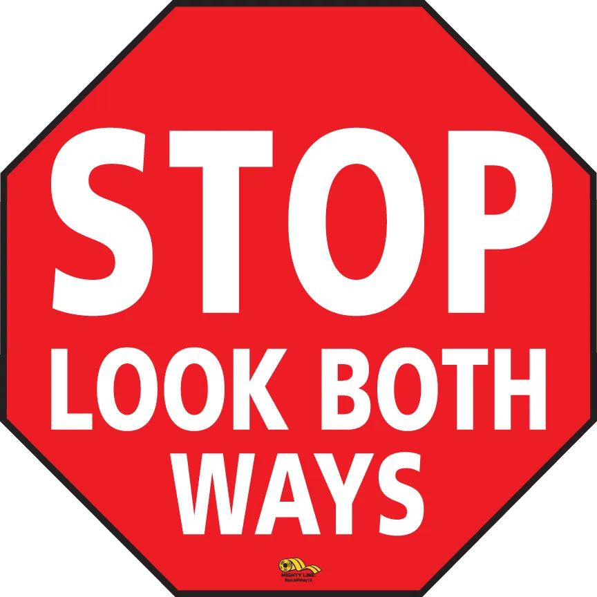 MIGHTY LINE StpLkBWay16 Stop Look Both Ways Floor Sign, 16 Inch Wide
