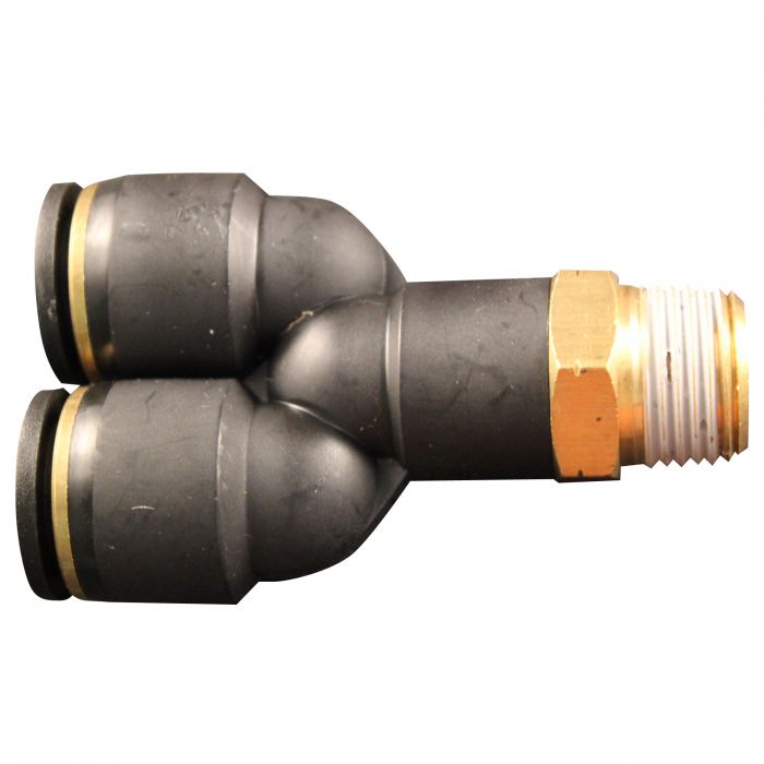 MILTON-INDUSTRIES 2206-9 Swivel Y Connector, Male, 3/8 Inch Tube Outer Dia., 1/2 Inch NPT