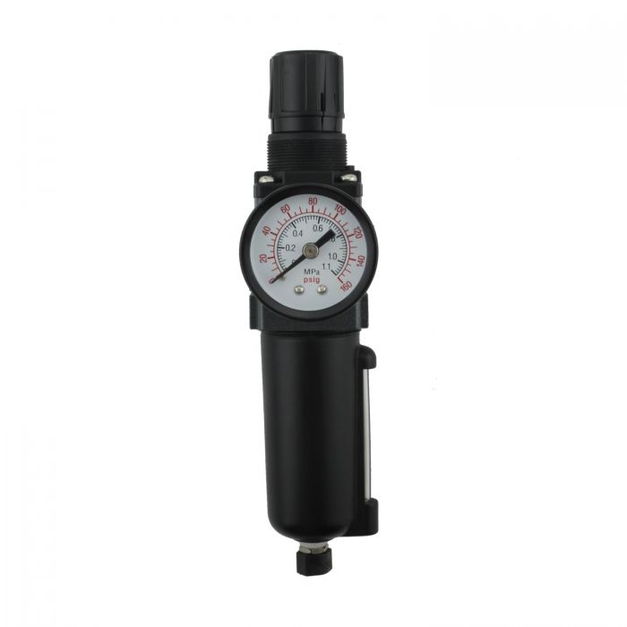 MILTON-INDUSTRIES EX25PB40A-01M Air Filter Regulator, 1/8 Inch NPT, Mini Metal Bowl