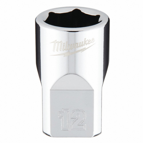 MILWAUKEE 45-34-9082 Standard Socket, 3/8 Inch Drive Size, 12.00 mm, 6-Point, Std, Chrome