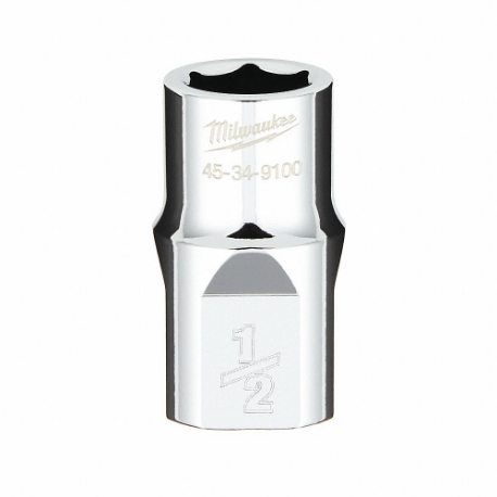 MILWAUKEE 45-34-9100 Standard Socket, 1/2 Inch Drive Size, 1/2 Inch Socket Size, 6-Point, Std, Chrome