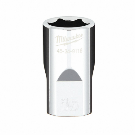 MILWAUKEE 45-34-9116 Standard Socket, 1/2 Inch Drive Size, 15.00 mm, 6-Point, Std, Chrome