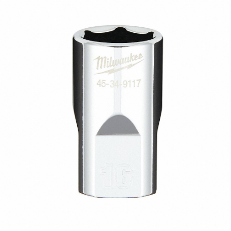 MILWAUKEE 45-34-9117 Standard Socket, 1/2 Inch Drive Size, 16.00 mm, 6-Point, Std, Chrome