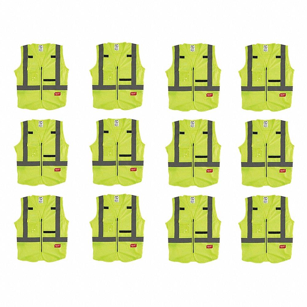 MILWAUKEE 48-73-5061X12 High Visibility Vest, ANSI Class 2, X, S/M, Lime, Solid Polyester, Zipper