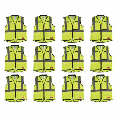 MILWAUKEE 48-73-5082X12 High Visibility Vest, ANSI Class 2, X, L/XL, Lime, Solid Polyester, Zipper