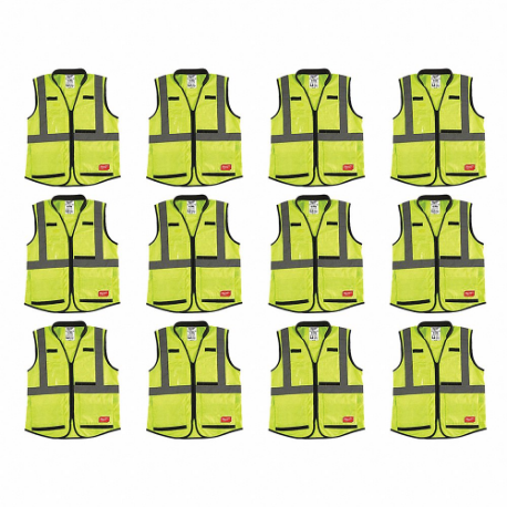 MILWAUKEE 48-73-5083X12 High Visibility Vest, ANSI Class 2, X, S/M, Lime, Solid Polyester, Zipper