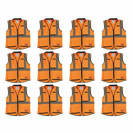 MILWAUKEE 48-73-5093X12 High Visibility Vest, ANSI Class 2, X, S/M, Orange, Solid Polyester, Zipper
