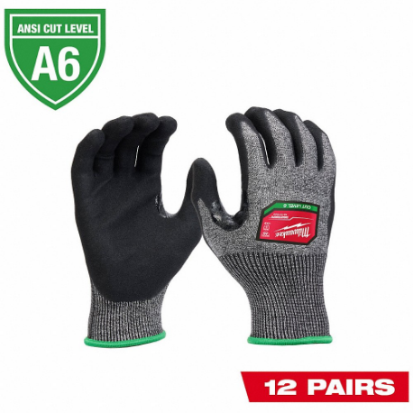 MILWAUKEE 48-73-7002B Cut Protection Dipped Gloves, L, Ansi Cut Level A6, Palm And Fingertips, Gray