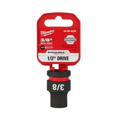 MILWAUKEE 49-66-6200 Standard Impact Socket, 1/2 Inch Drive Size, 3/8 Inch Size, 6-Point