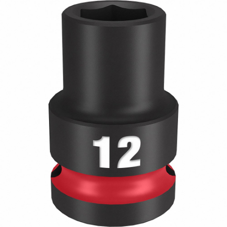 MILWAUKEE 49-66-6244 Standard Impact Socket, 1/2 Inch Drive Size, 12 mm, 6-Point