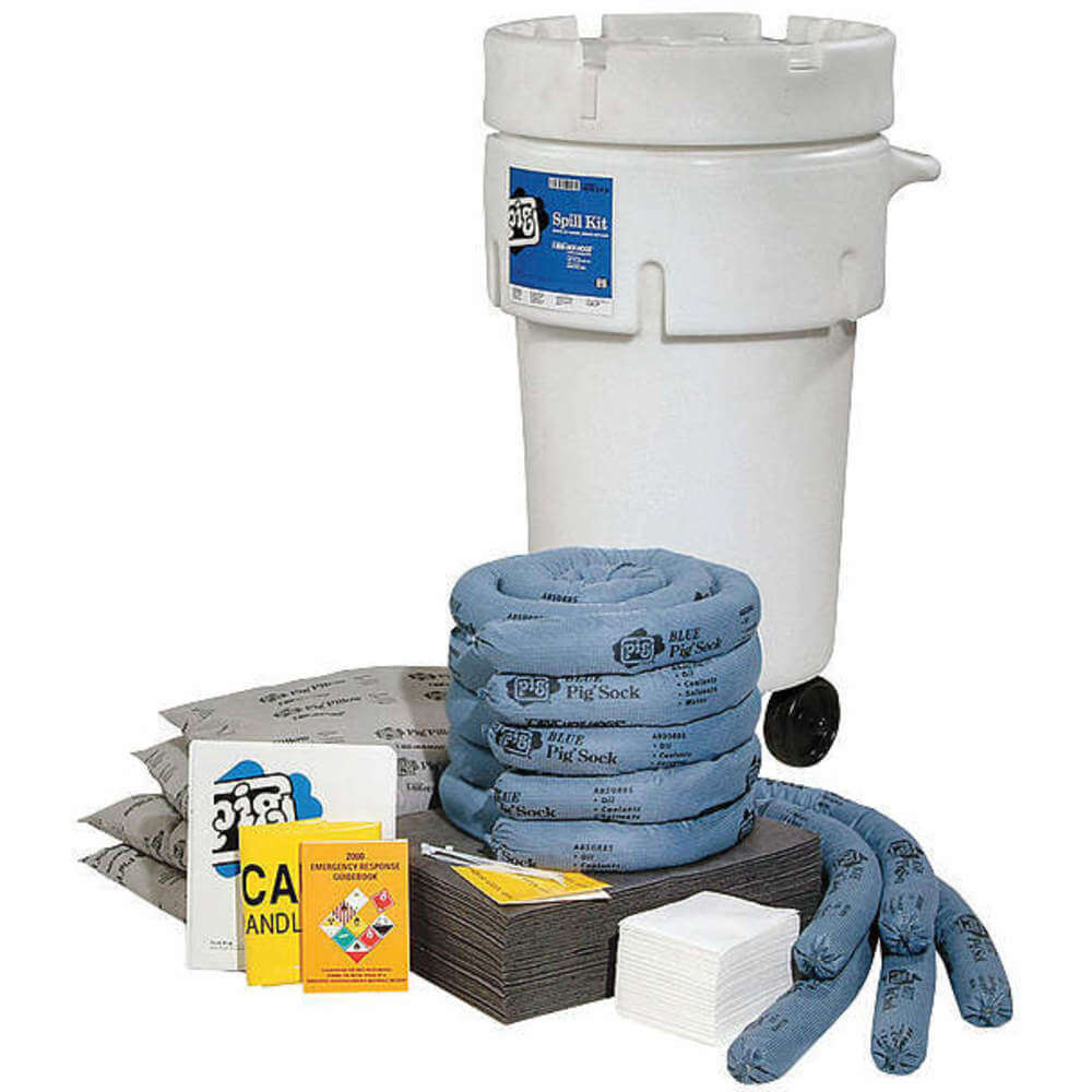 | Sorbents Included | (4) 17" W x 21" L x 2" H Absorbent Pillow, (40) 15" W x 20" L Absorbent Mat Pad, (5)3" D x 10 ft. L Absorbent Sock, (5)3" D x 48" L Absorbent Sock, (56) 11.8" W x 13" L Pig Pr40 All-Purpose Wipers |