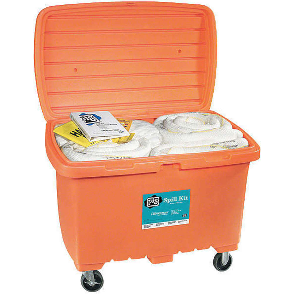 | Sorbents Included | (100) 20" L x 15" W Pig Stat-Mat Absorbent Pad (Mat214), (2) 10 ft. L x Ext. Dia. 5" Pig Oil-Only Absorbent Boom (Bom405), (4) Ext. Dia. 8" W x 18" L Pig Sump Skimmer (Skm403), (8) 10 ft. L x Ext. Dia. 3" Pig Oil-Only Absorbent Boom (Bom406), 10 ft. L x Ext. Dia. 8" Pig Oil-Only Absorbent Boom (Bom304), Pig Spaghetti Strips |