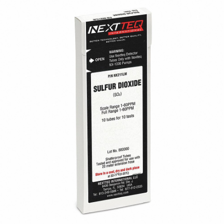 NEXTTEQ NX211LM Detector Tube, Sulfur Dioxide, 20 To 300 Ppm