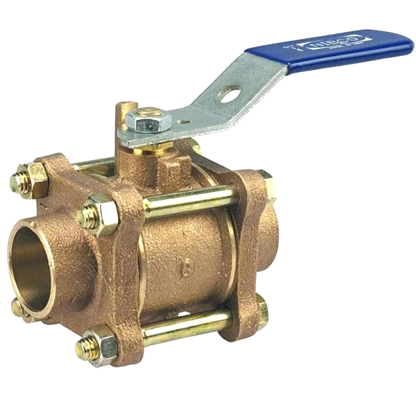 NIBCO NJ921BB S-595-Y Three Piece Ball Valve, Bronze, 1 1/4 Inch Size, Female Solder Cup, Quarter-Turn