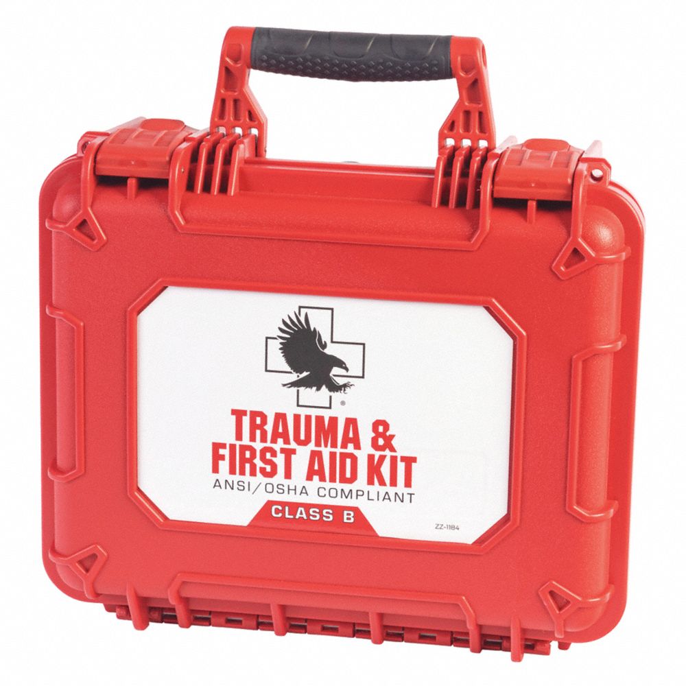 | Wound Dressings Included | (2) Burn Dressing, (2) Elastic Wrap Bandages, (2) Instant Cold Packs, (2) Sterile Oval Eye Pads, (2) Triangular Bandages, (4) Gauze Pad, (50) Flexible Fabric Bandages, Elastic Wrap Bandage, Flat Responder Emergency Trauma Dressing |
