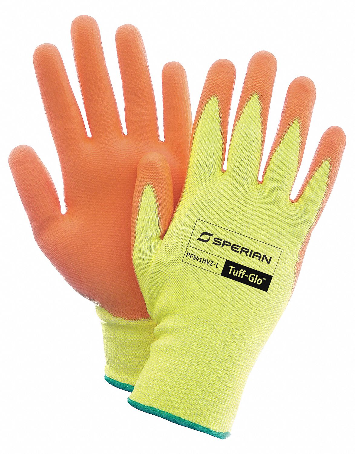 NORTH BY HONEYWELL PF541HVZ-L Coated Gloves, L, Rough, Polyurethane, Ansi Abrasion Level 6, Orange/Yellow