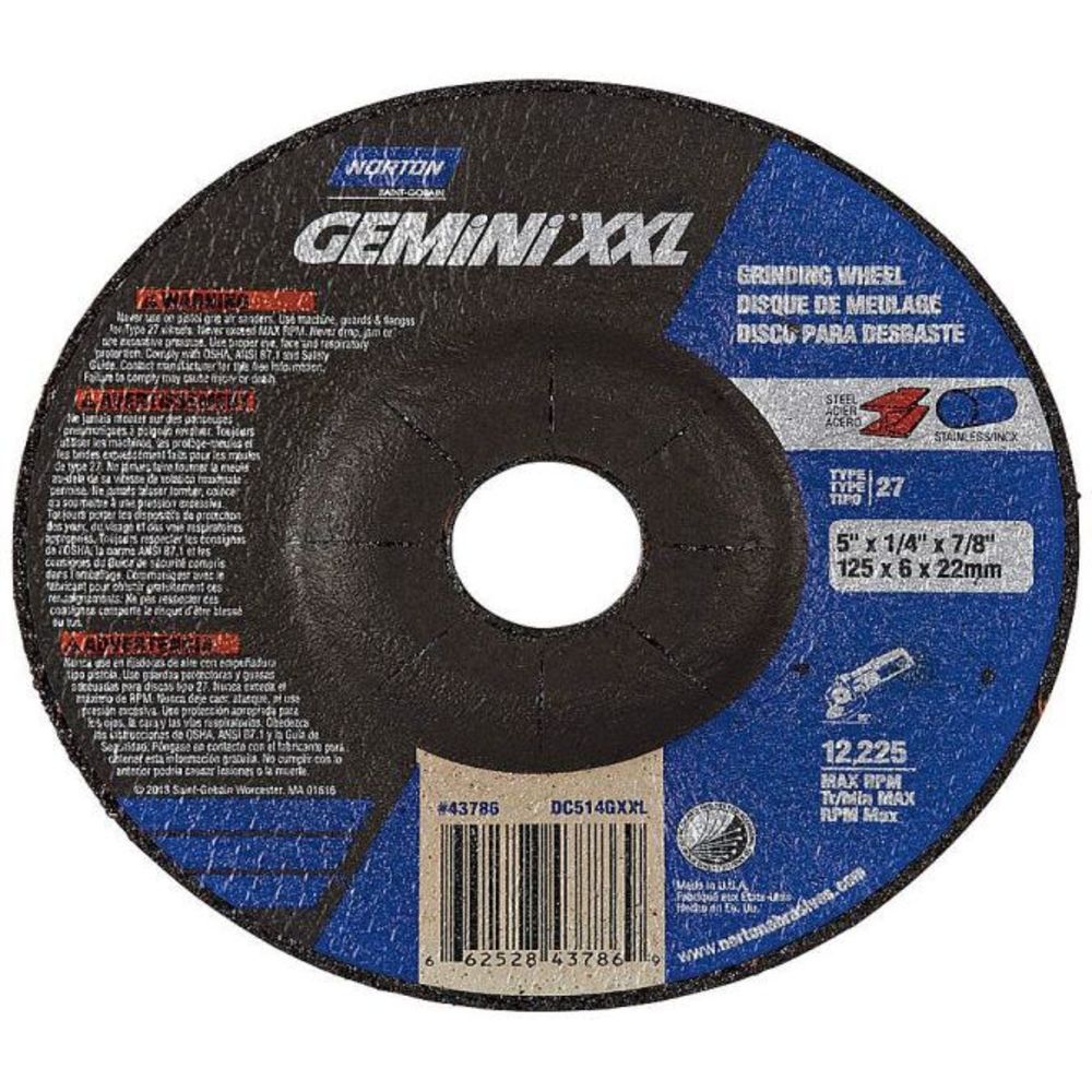 NORTON ABRASIVES 66252843786 Depressed Center Wheel 5 Inch 12225rpm